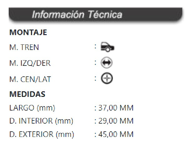 BUJE BARRA ESTABILIZADORA TRASERA CENTRAL IZQ / DER CHEVROLET ORIGINAL