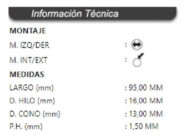 | Medida de rosca | 1, 5 |